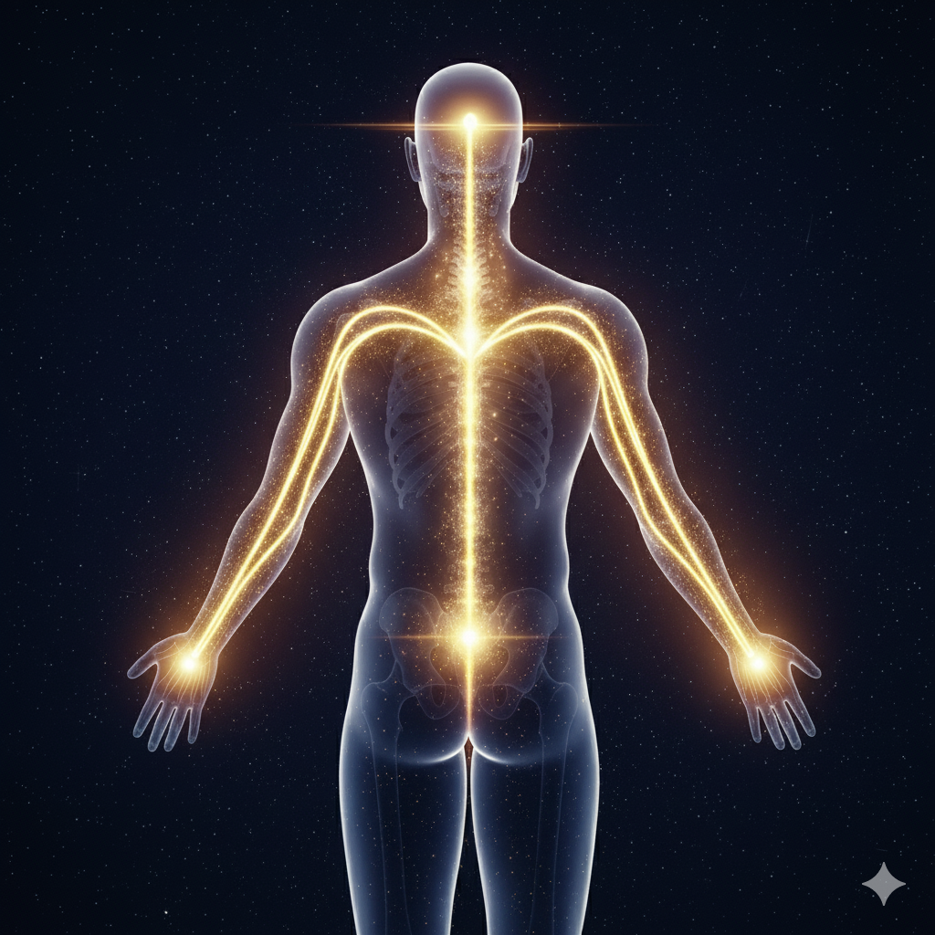Questo canale dirige e potenzia la vitalità, la forza interiore e il benessere generale, sostenendo la connessione tra la tua struttura fisica e il tuo nucleo energetico.